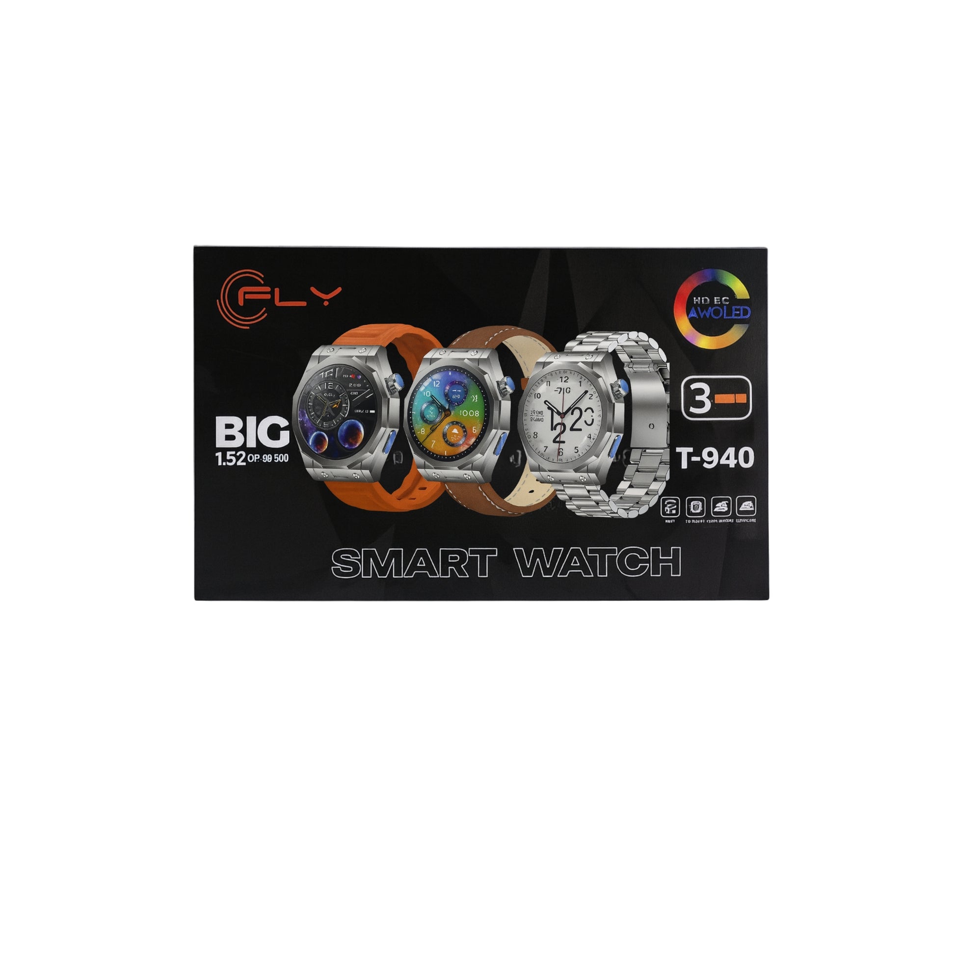 - El smartwatch FLY T-940 destaca por su diseño robusto y moderno con pantalla BIG de 1.52” HD IPS AMOLED, ofreciendo una experiencia visual clara y de alta calidad. Incluye múltiples funciones como modo deportivo, llamadas desde el reloj, monitor de sueño y medición de temperatura corporal, ideal para quienes buscan un reloj inteligente completo.